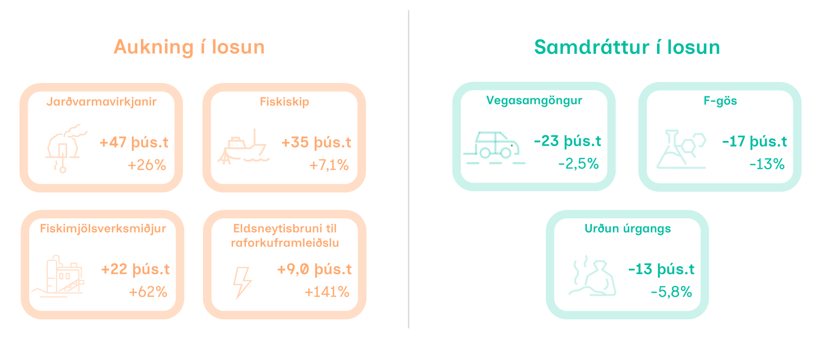 Mynd 2: Helstu breytingar í samfélagslosun Íslands milli áranna 2023 og 2024.